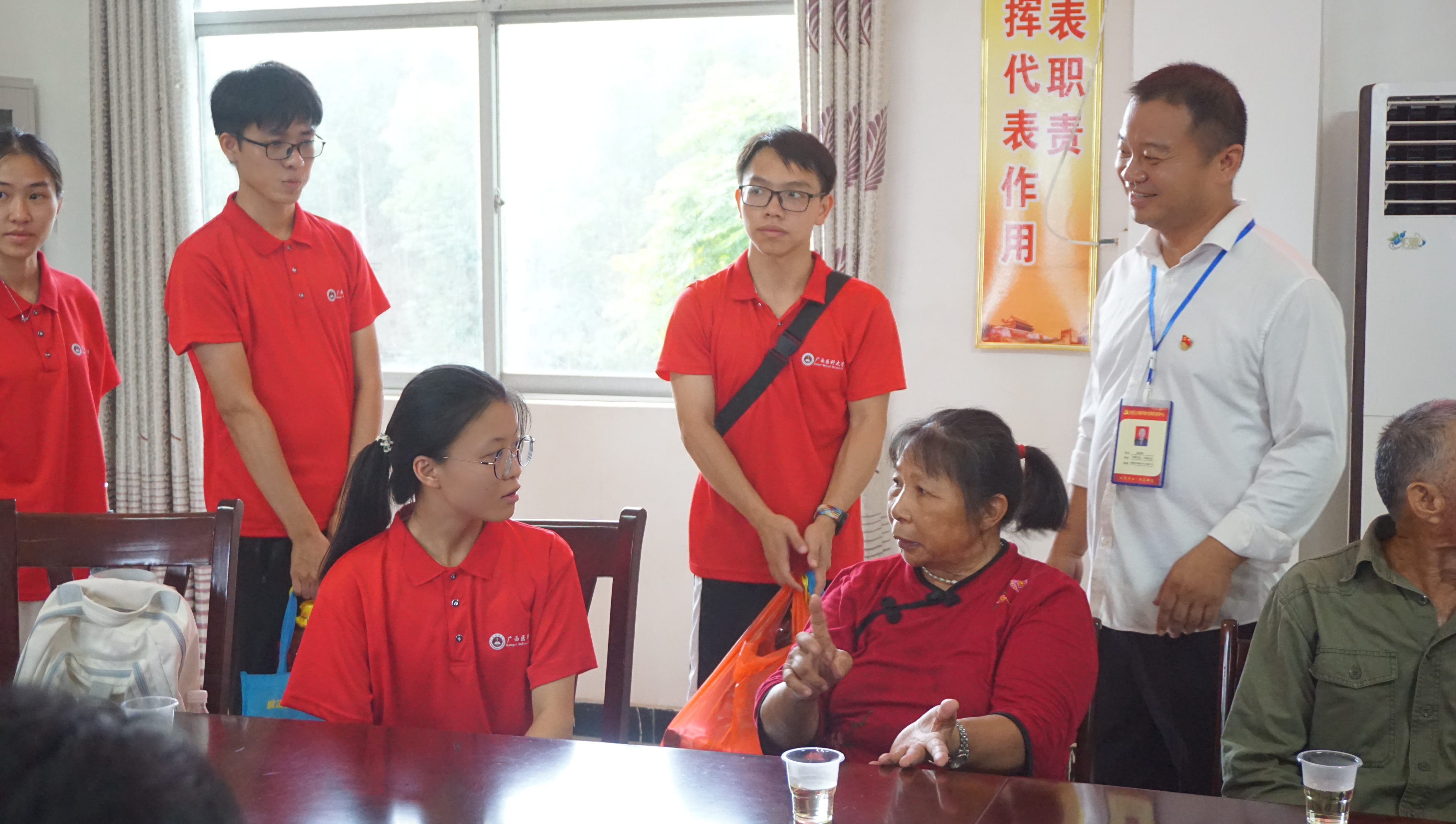 研学团深入平南古渡,开展历史文化调研。同学们积极走访当地居民,与其交流学习平南古渡历史文化,获取古渡历史文化资料,深刻理解历史文化内涵。在交流实践中深化对本土文化的理解,同步提升了社会交流能力与历史感悟力。在平银村战役遗址,浓厚的红色氛围将研学推向高潮。村支书与老兵婆婆献唱民谣,与同学们共唱红歌,嘹亮歌声在山谷间回荡。随后,同学们分组开展实践服务:为乡亲们科普健康知识;慰问抗战老兵,聆听战斗故事;面向村童开展爱国主义教育和心理团辅,播撒红色种子。这些实践活动不仅传递了温暖,更让同学们深刻理解了“为人民服务”的真谛,体会到国家发展与乡村建设的紧密联系,进一步坚定了走中国特色社会主义道路的信念。