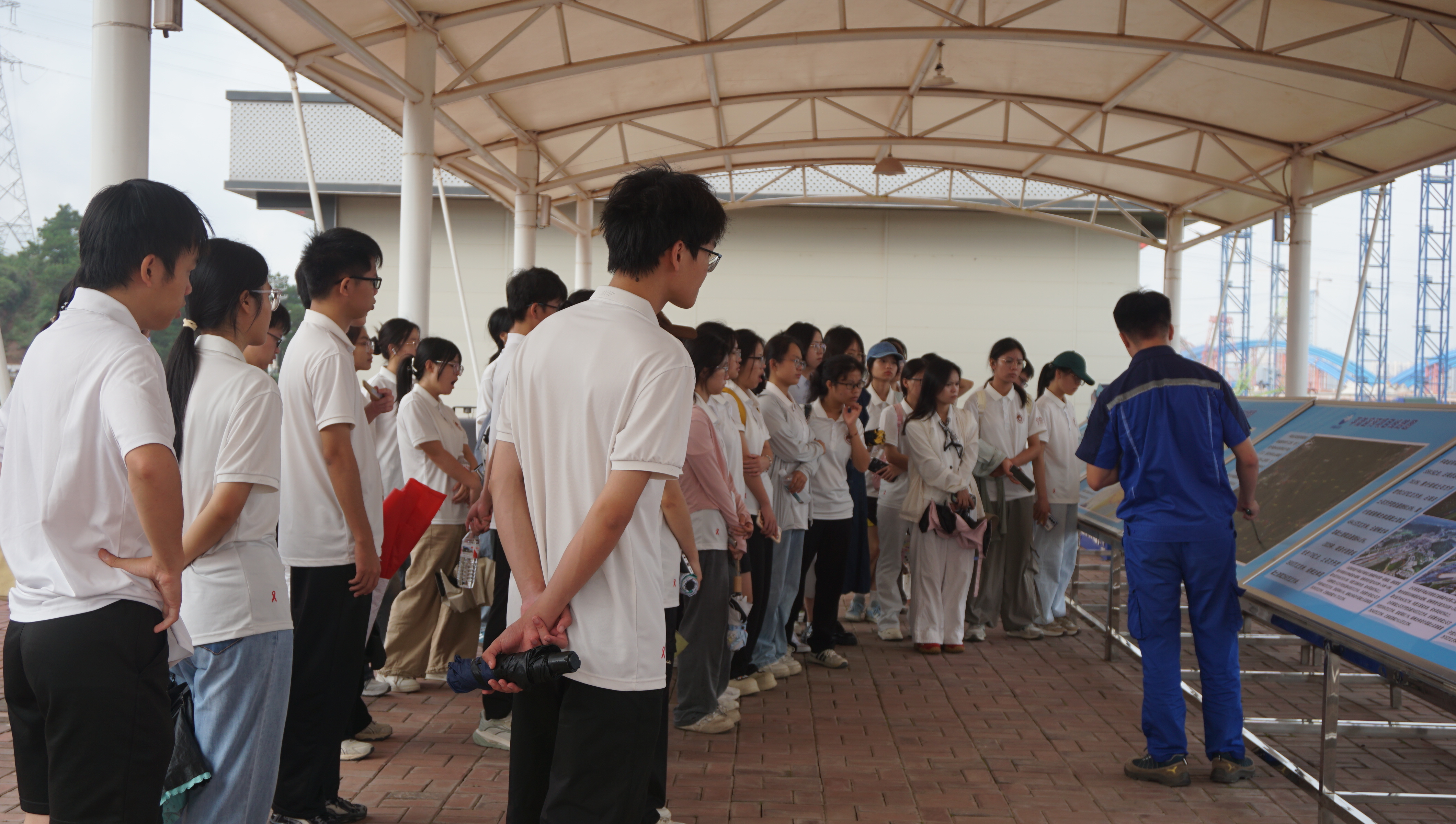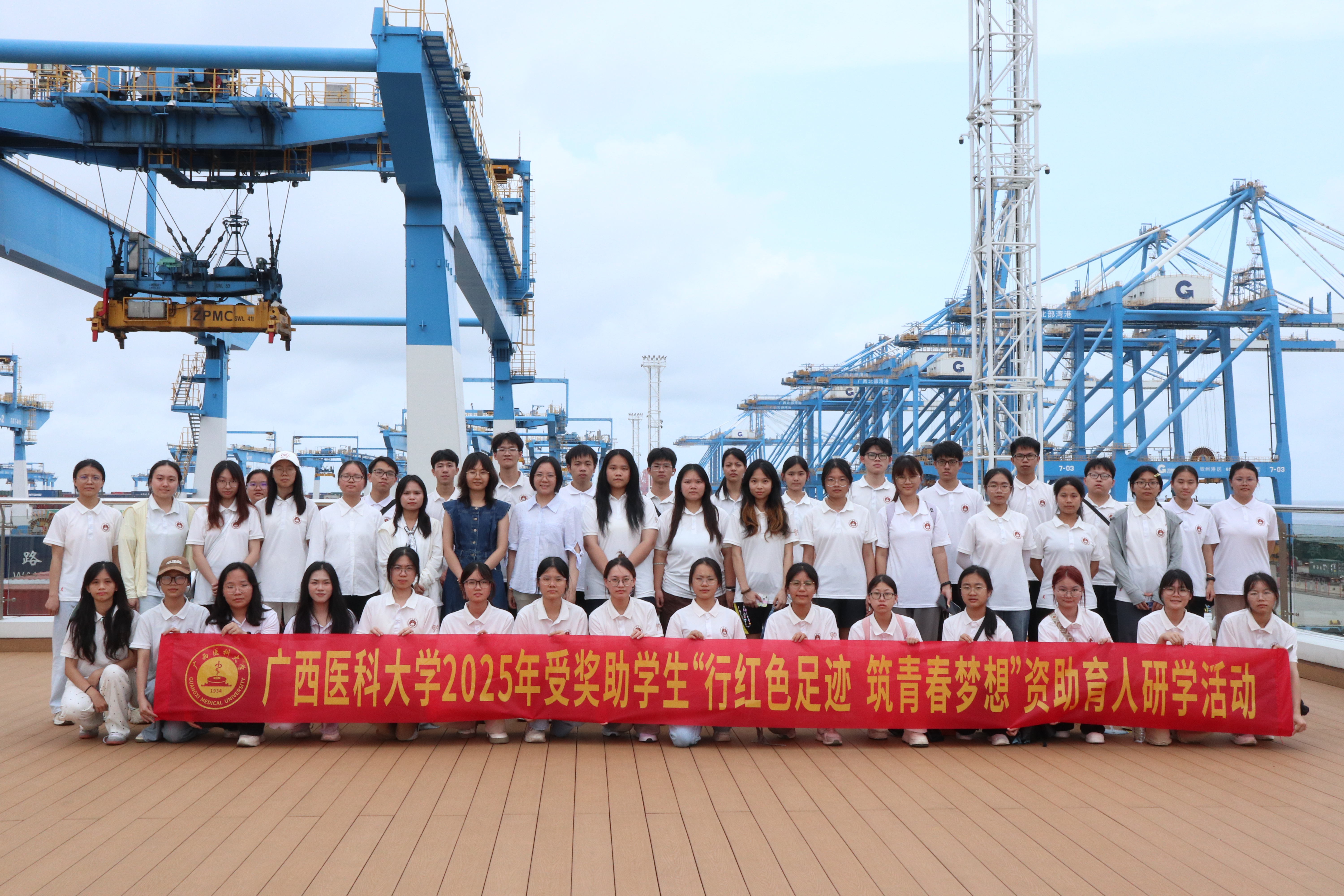 在热火朝天的平陆运河建设现场,讲解员详细介绍了工程的施工工艺与宏伟蓝图。从精密结构到前沿技术,每一个细节都令同学们赞叹不已。大家了解到,这项超级工程将重塑西南水运格局,赋能区域发展,强烈的民族自豪感油然而生。行程最后一站是钦州港自动化码头,无人集装箱卡车穿梭有序,智能机械臂精准作业,大数据平台实时调度——科技赋能的高效图景尽收眼底。同学们亲身感受到科技对向海经济的强大驱动力,为国家日新月异的科技实力倍感骄傲与振奋。