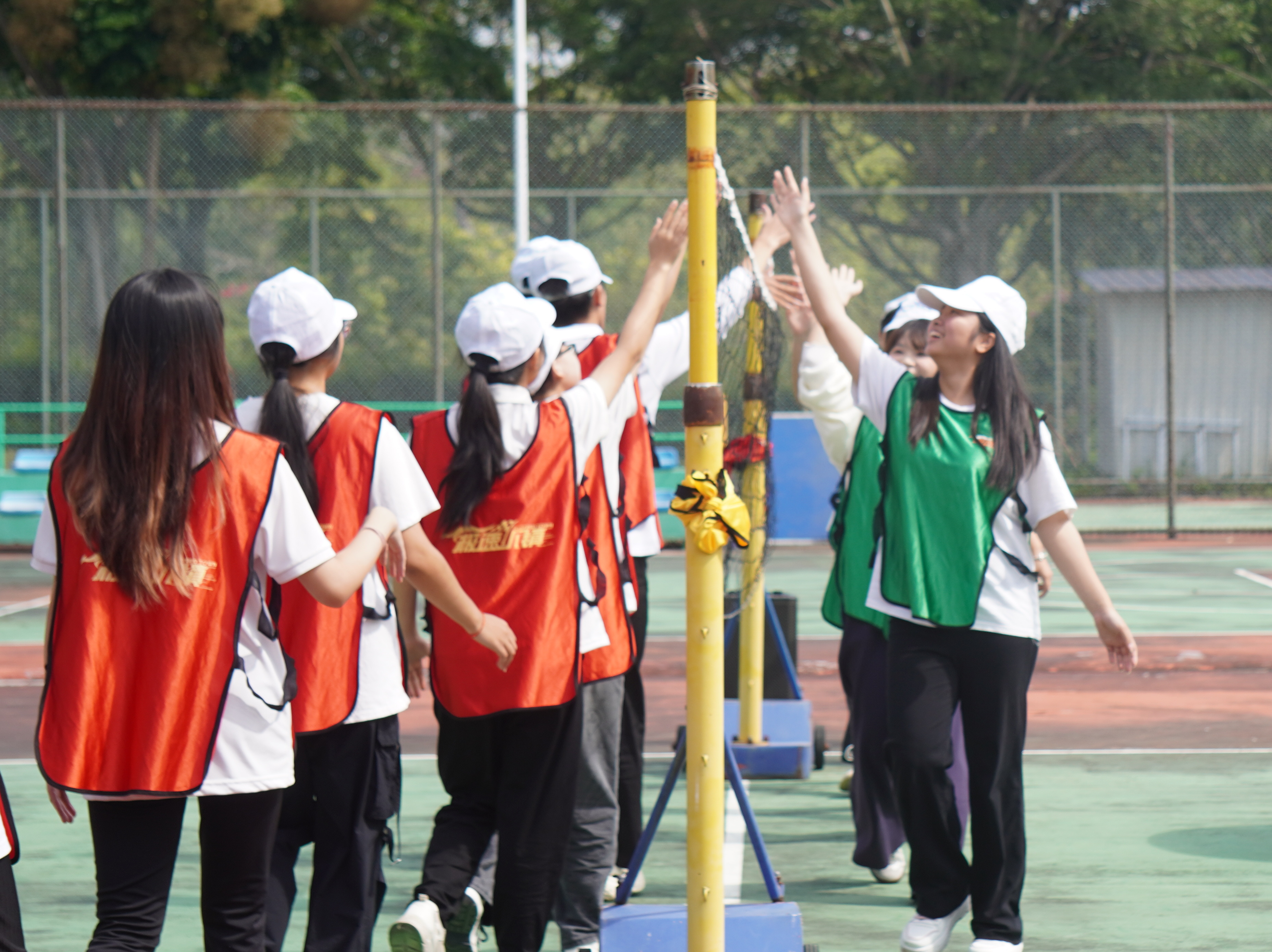 活动在轻松愉快的“兔子跳”热身游戏中拉开序幕。同学们化身为活泼的“小兔子”,在跃动与欢声笑语中体会到坚持与活力的意义。随后的“合力堆塔”环节中,各小组成员密切配合,从一次次尝试中积累经验,凭借耐心与智慧共同筑起象征团结的“胜利之塔”。在“管道运球”项目中,同学们通过精准分工与有效沟通,切身感受到团队协作带来的顺畅与力量。气排球比赛将活动推向高潮,赛场上每一次精准的传球、每一句暖心的鼓励、每一次及时的搀扶,无不彰显团队精神与集体荣誉的力量。